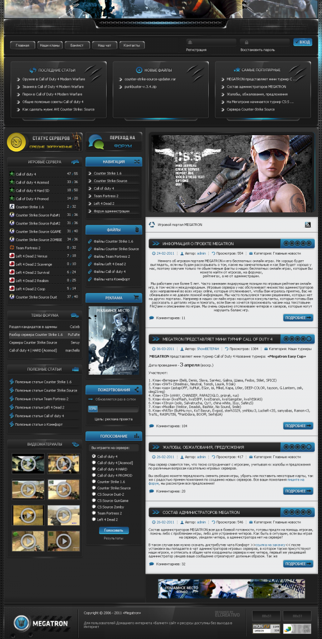 Темный шаблон для uCoz, который оформлен в стиле популярного военного шутера Call of Duty 4: Modern Warfare 2